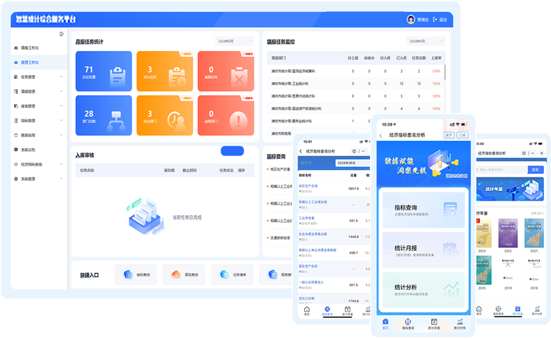 根据《统计法》关于“充分应用大数据等现代信息技术变革统计生产方式,确保数据源头可溯、审核可控、质量可靠”的要求,大力推进统计业务数字化转型,提升统计数据采集、审核、发布、共享和应用等流程的数字化水平,创新研发了智慧统计综合服务平台。